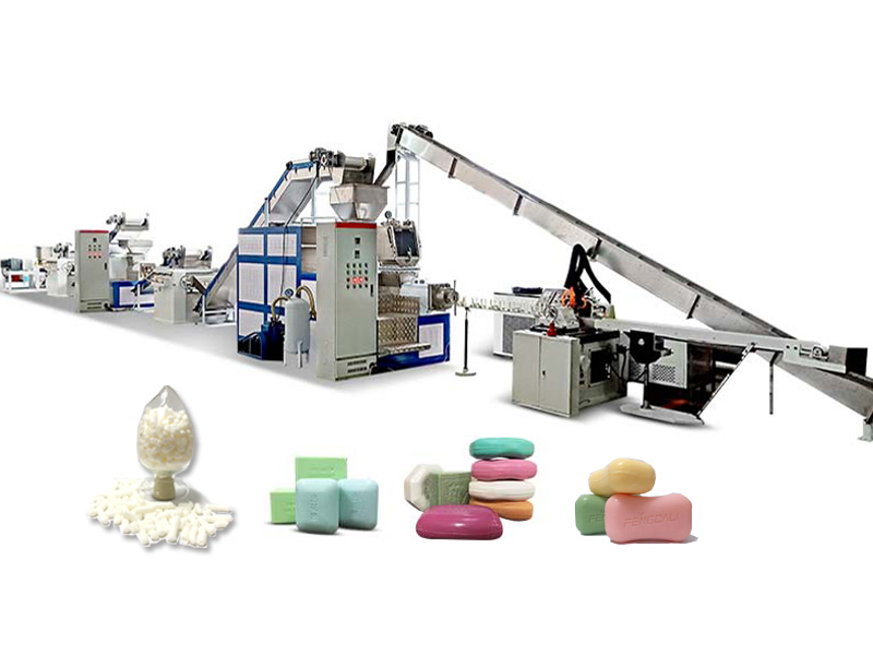 香皂成型線是以皂粒為生產(chǎn)原料,經(jīng)拌料、研磨、精制、真空出條、打印成型,制得各種脂肪酸含量的高中低檔香皂、賓館皂等。